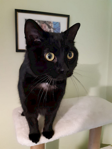 When Sharon’s friend Maddy and her elderly father were looking for a feline companion, she knew exactly where to turn - Stour Valley Rescue, Stourbridge, where she volunteers. The rescue was overflowing with gorgeous cats in need of loving homes, and one little black cat, Archie, made his choice clear the moment he met Maddy!